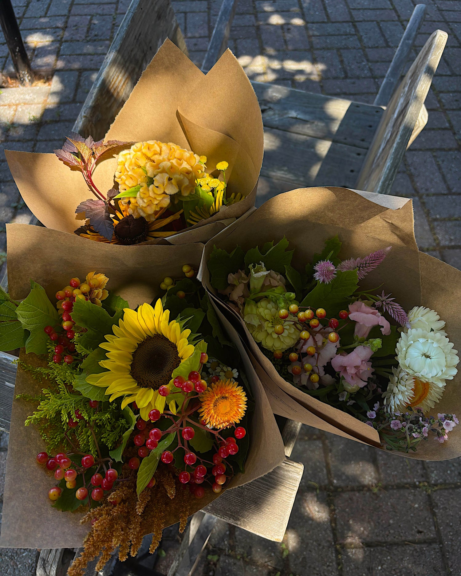 Nos compositions reflètent le rythme des saisons et célèbrent la richesse de nos fermes québécoises. La joie des premières tulipes après un long hiver, le retour tant attendu des pivoines, l’abondance colorée de juillet et août: le cycle de la nature est notre plus grande source d’inspiration. En privilégiant les fermes locales, nous soutenons l’économie d’ici et sa biodiversité, tout en favorisant un circuit court, synonyme de fleurs fraîches et de qualité.