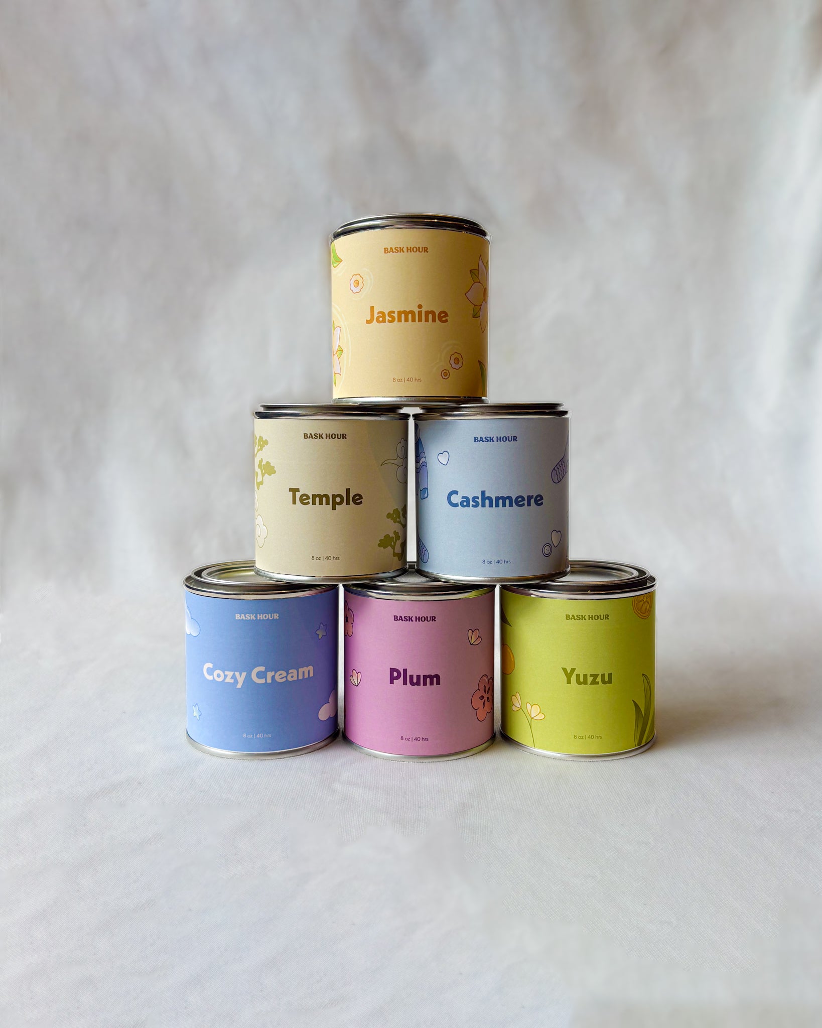 Collection de bougies fabriquées à Montréal par Bask Hour.